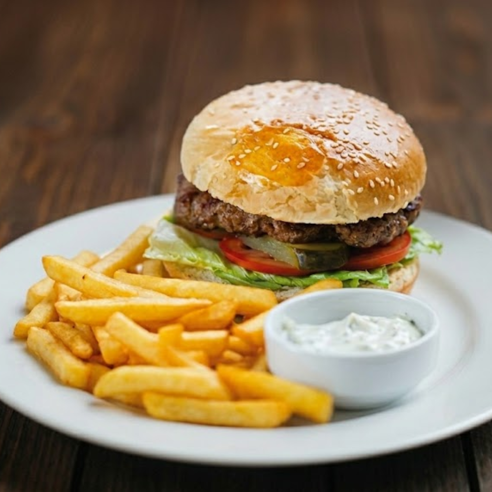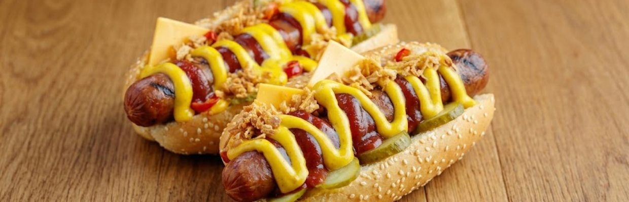 Hot dog à la saucisse de Francfort, cuite au four Mychef, servi dans un pain chaud avec moutarde, ketchup et mayonnaise.